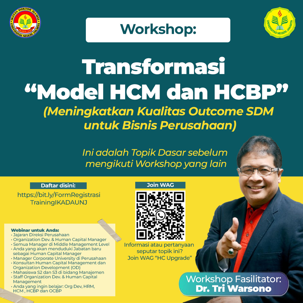 Workshop ini mengenai bagaimana mengaplikasikan Model Human Capital Management yang terkini diselaraskan dengan konsep Human Capital Business Partner (HCBP). Workshop ini memberikan solusi bagaimana Model HRM dan HCM mampu memberhasilkan Bisnis Perusahaan.